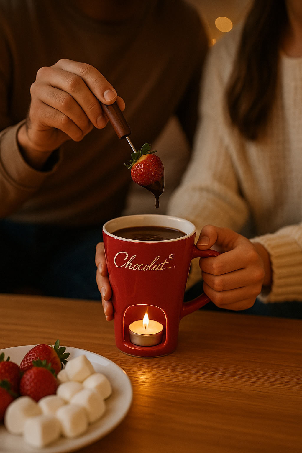Keep the tealight lit to hold a silky dip. Add a splash of milk/cream if you like it looser. Extinguish safely after.